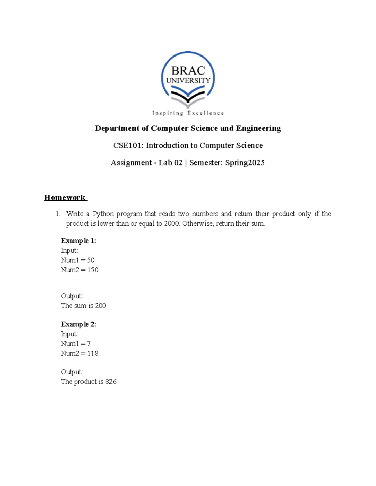 Lab 02 Homework Spring 2025 - Department of Computer Science and ...
