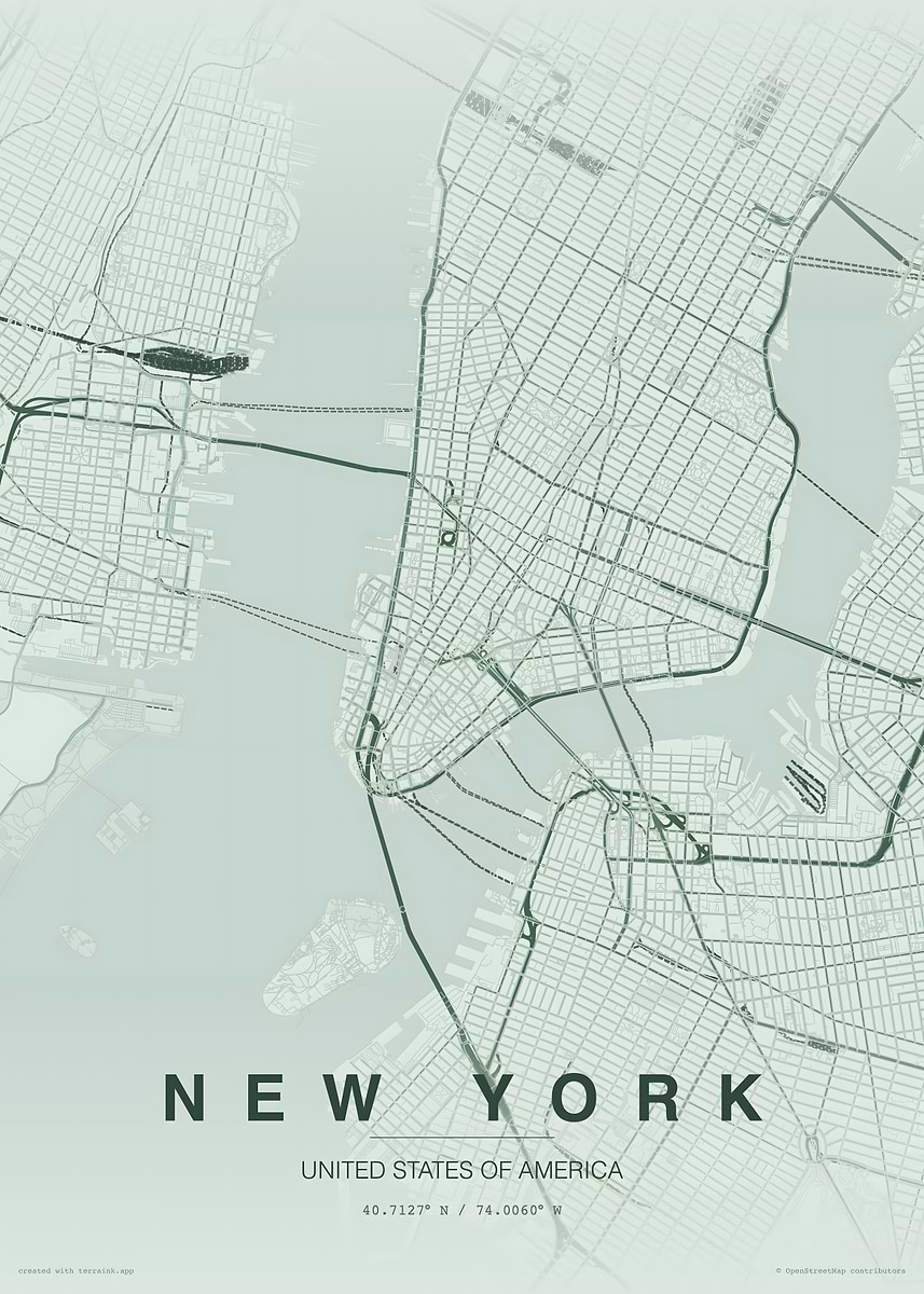 'New York City Map Art' Poster, picture, metal print, paint by Felix_vW ...