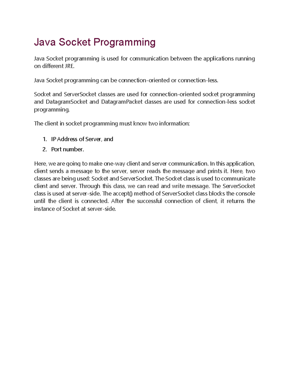 COMP313P1 Practical Session 7: Java Socket Programming Notes - Studocu