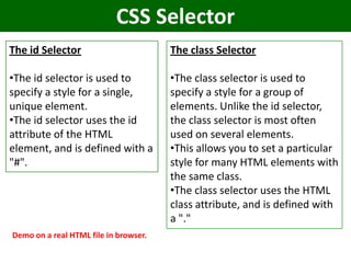 Class vs ID Selectors in CSS | PDF | Html Element | Html