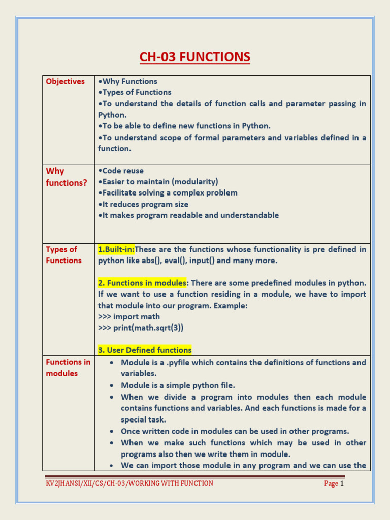 Chapter 2 - Functions in Python NEW | PDF | Parameter (Computer ...