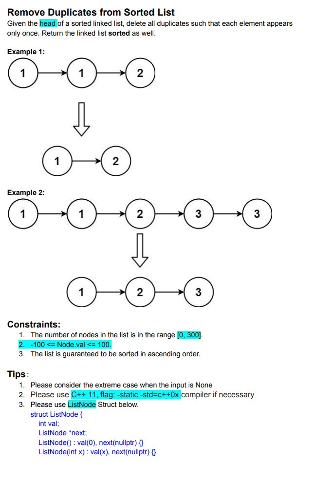 Solved Remove Duplicates from Sorted List Given the head of | Chegg.com