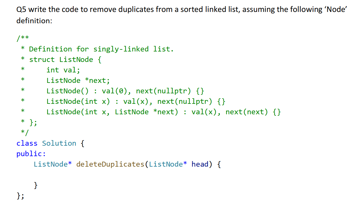 Solved Q5 write the code to remove duplicates from a sorted | Chegg.com
