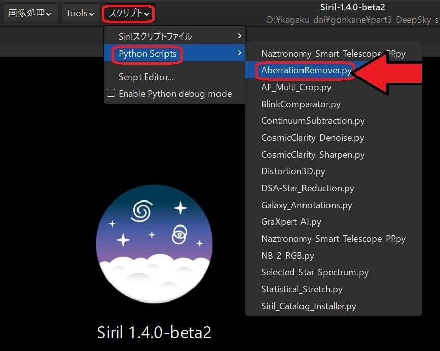 【Pythonスクリプト】Siril のPythonスクリプトを使うには(v1.4.0beta1より)|ゴンカネ5