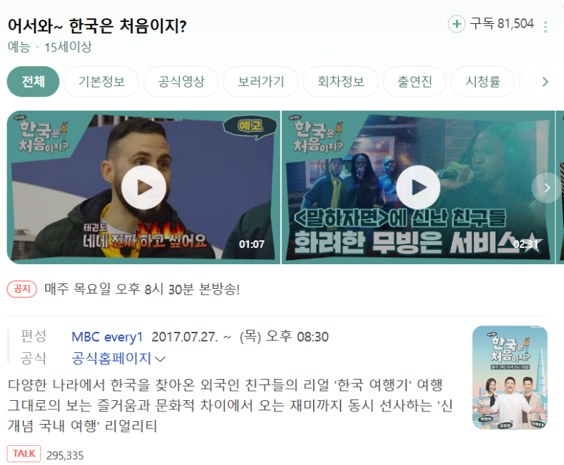 어서와 한국살이는 처음이지 기본 정보 첫방송 : 네이버 블로그