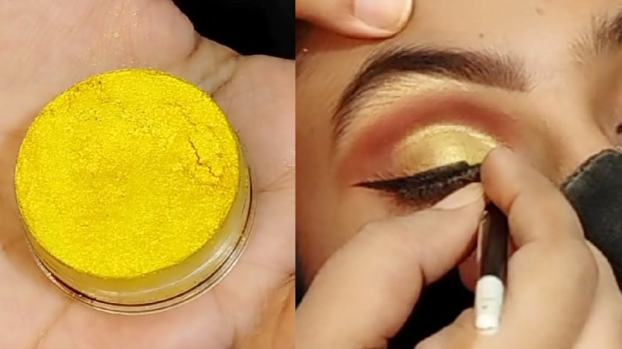Yellow and Brown Simple eye makeup tutorial || Very easy to create ...