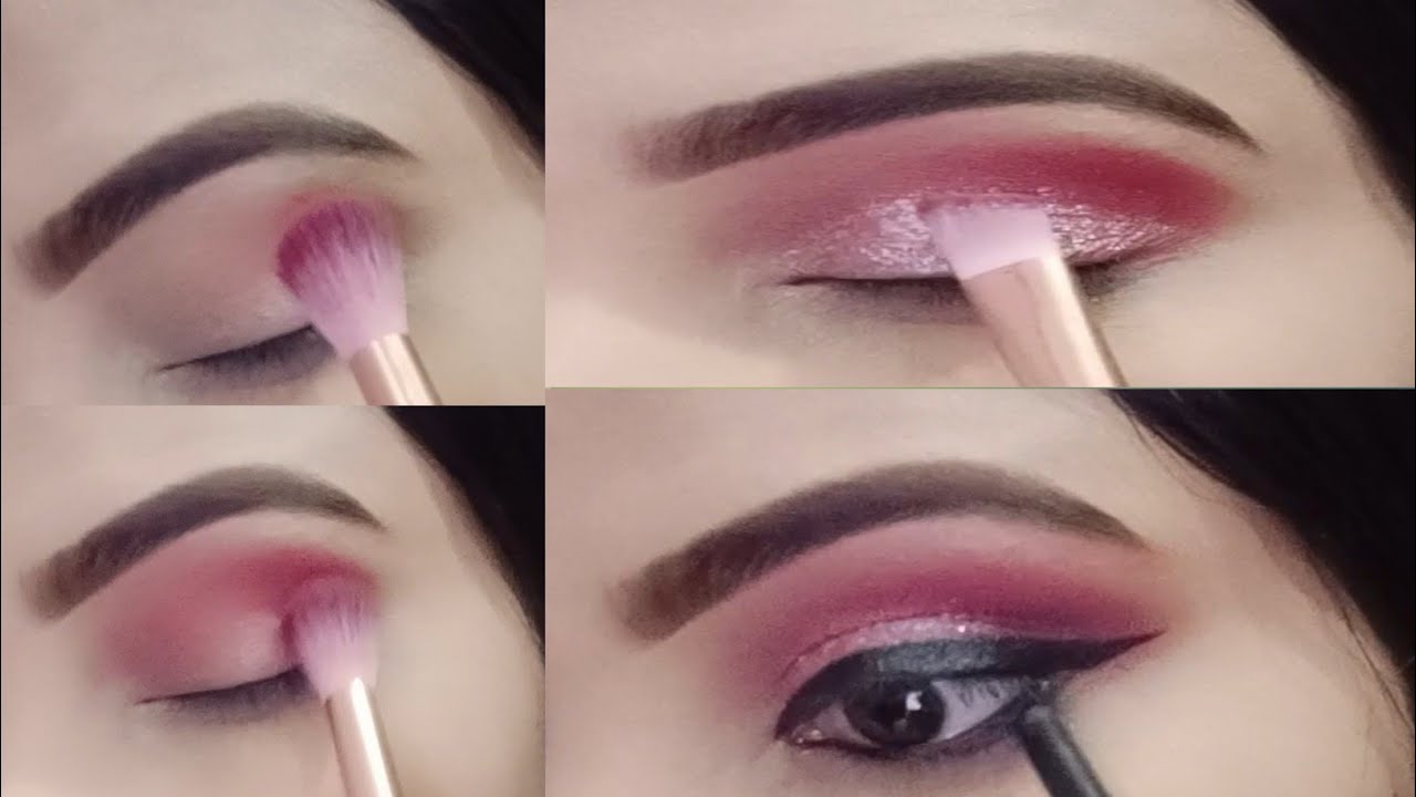 red glitter smokey eyemakeup tutorial /easy and simple eyemakeup step ...