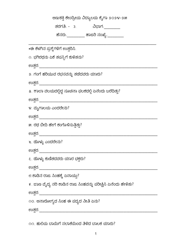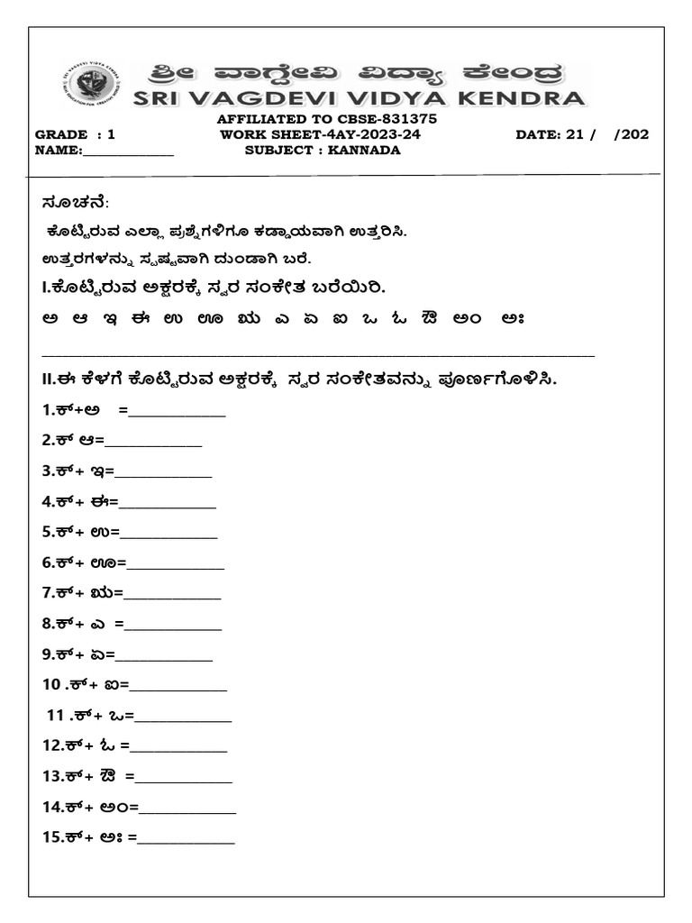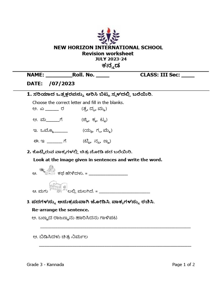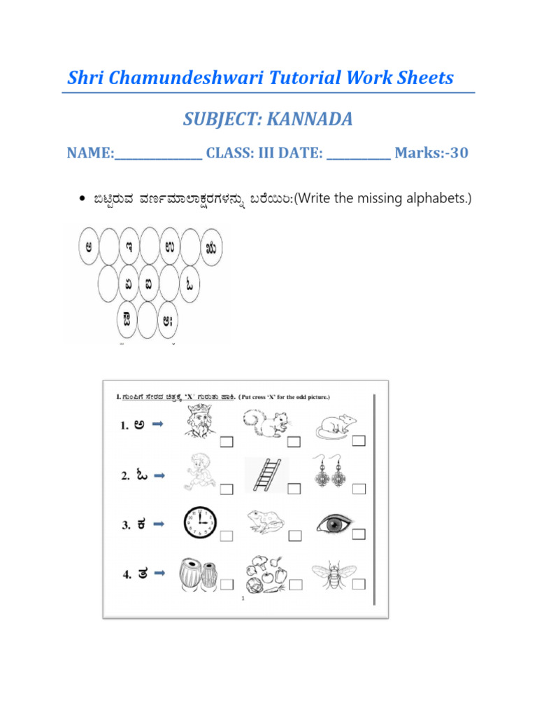 Kannada Worksheet - Kannada - Assignment - Teachmint