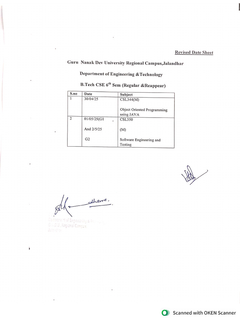 Revised CSE 6th Sem Datesheet | PDF