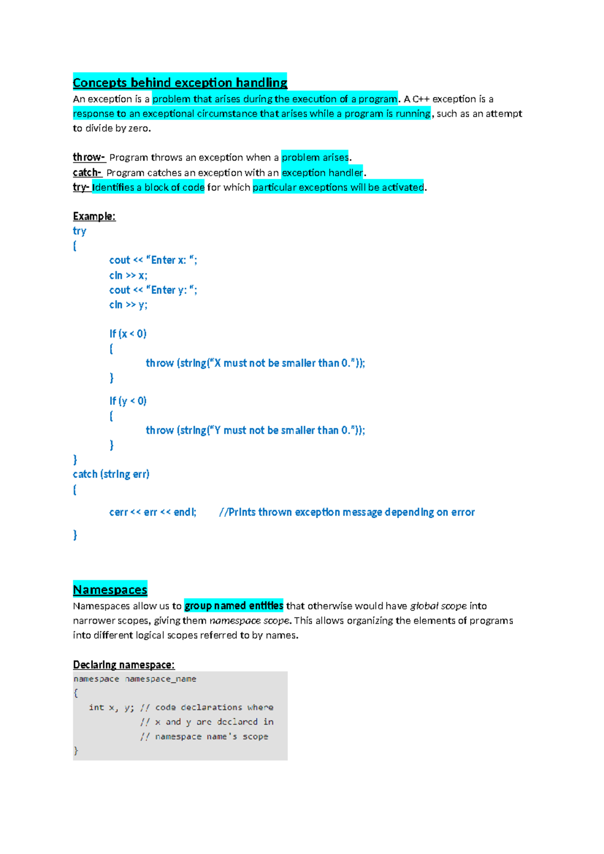 C Notes-1 - Notes summary - Concepts behind exception handling An ...