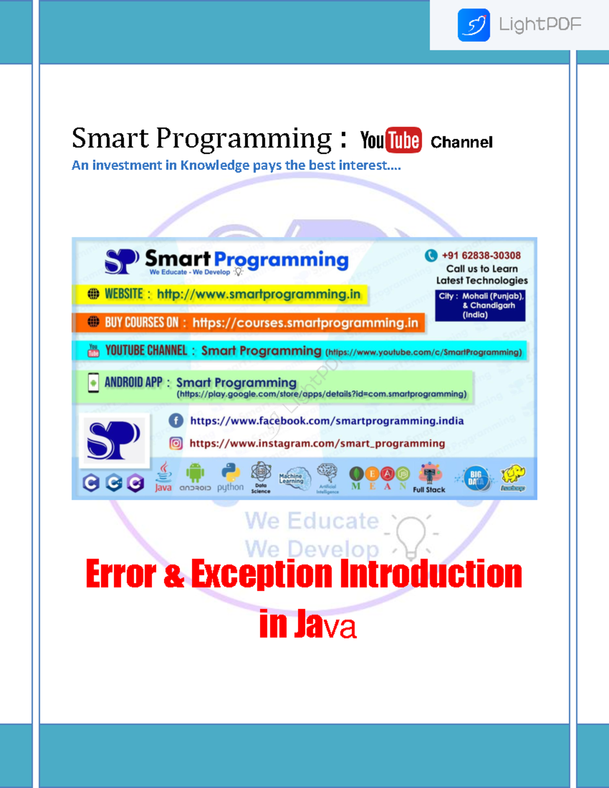 Java Error & Exception Handling Overview for Smart Programming - Studocu