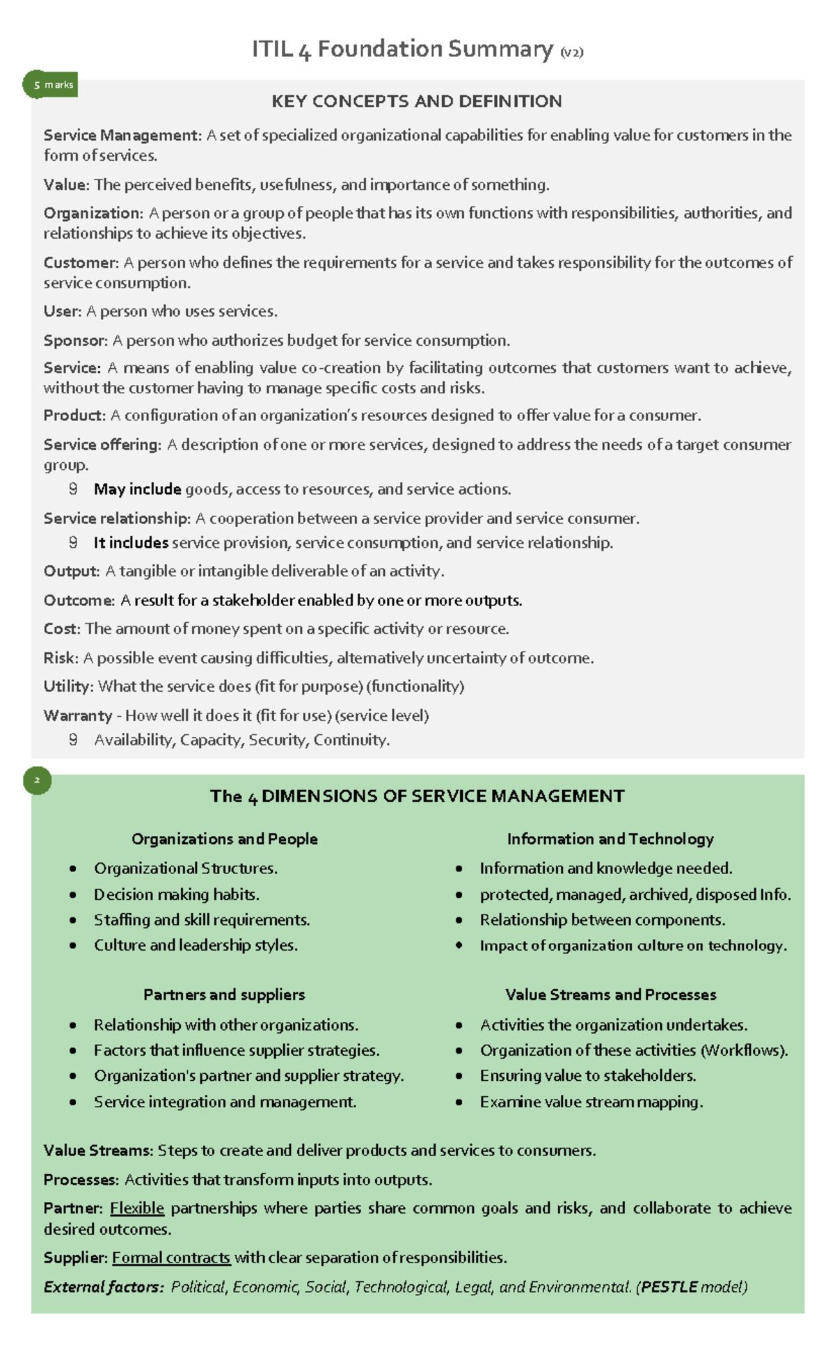 ITIL 4 Foundation Summary: Key Concepts & Practices Overview - Studocu