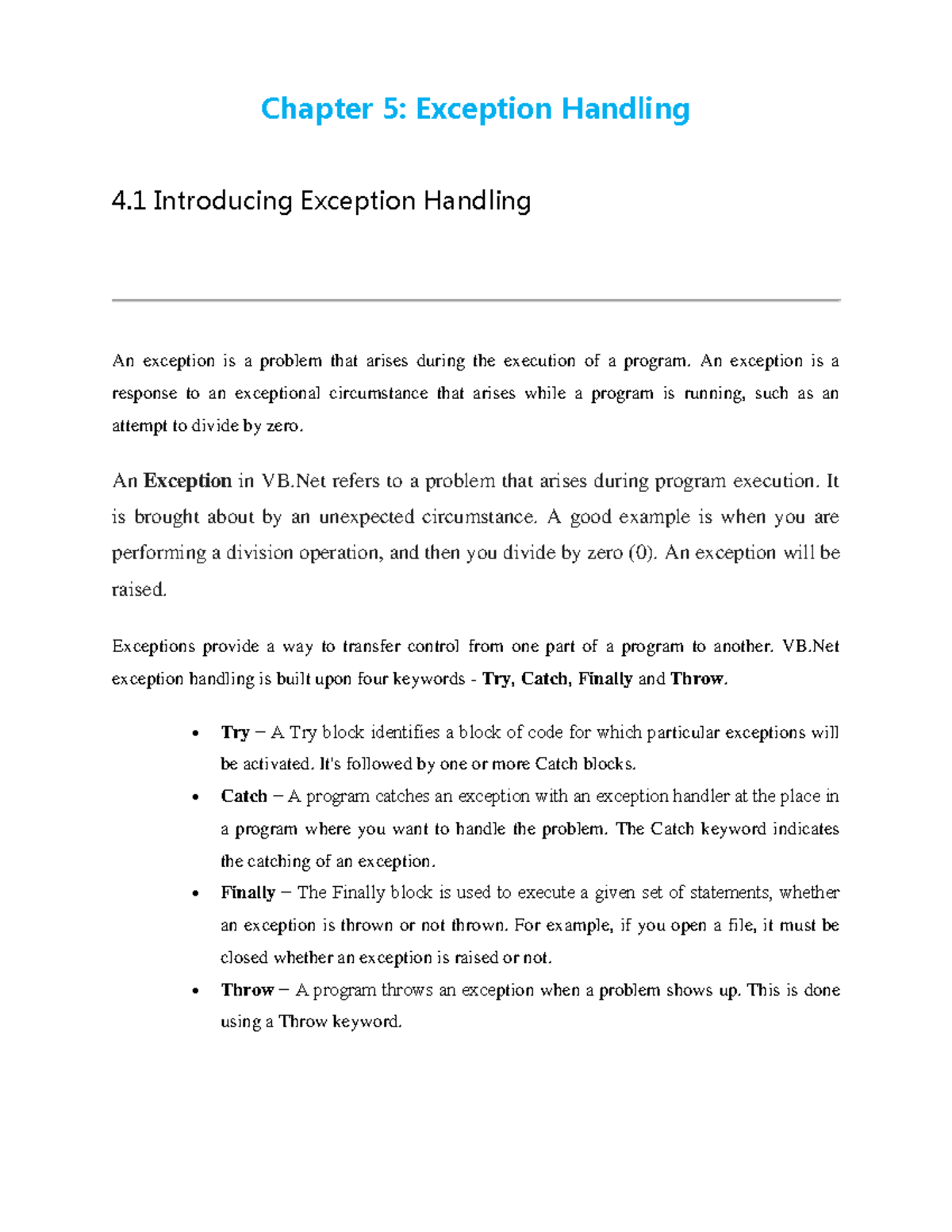 VB.NET Exception Handling: Concepts and Implementation - Chapter 5 ...