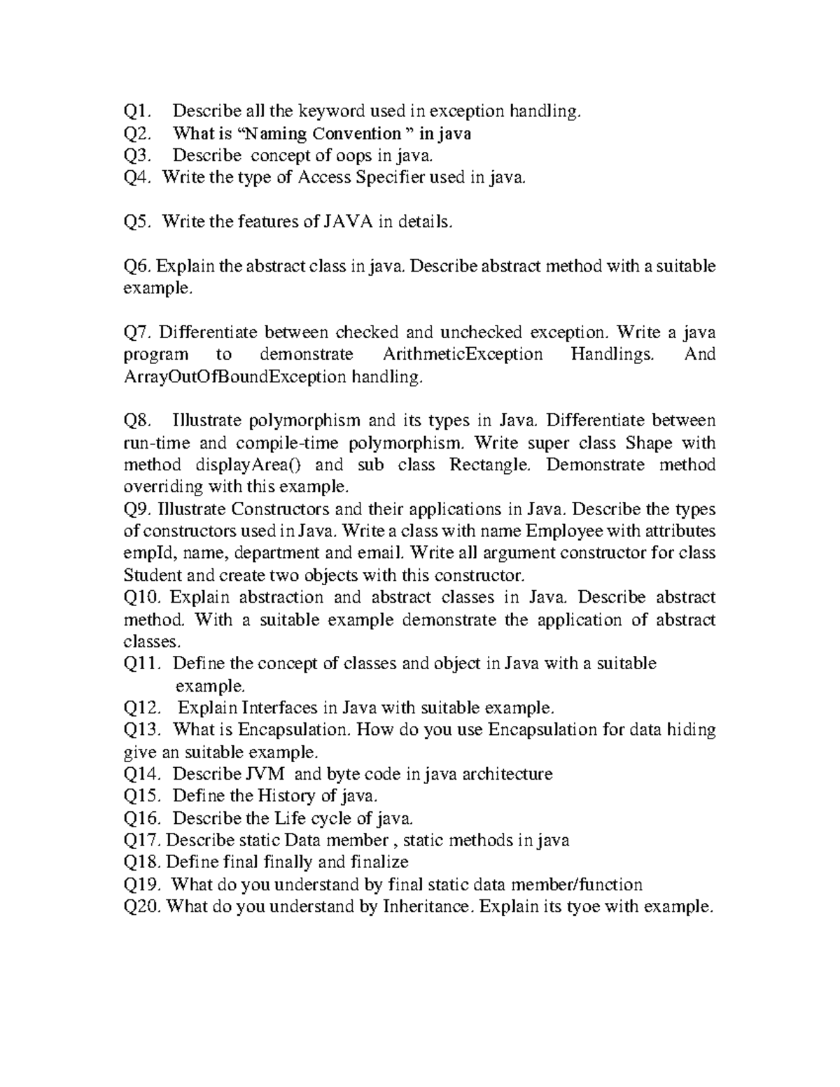 1st Java PYQ - Comprehensive Notes on Exception Handling & OOP Concepts ...