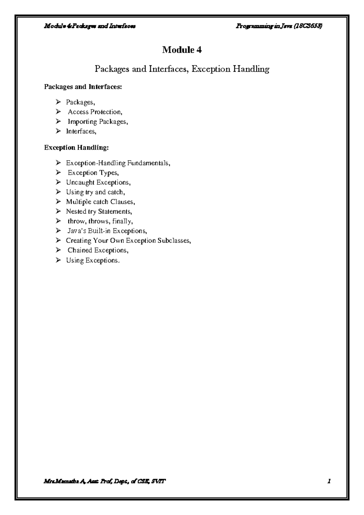 Java III Sem Module IV: Packages and Exception Handling Overview - Studocu