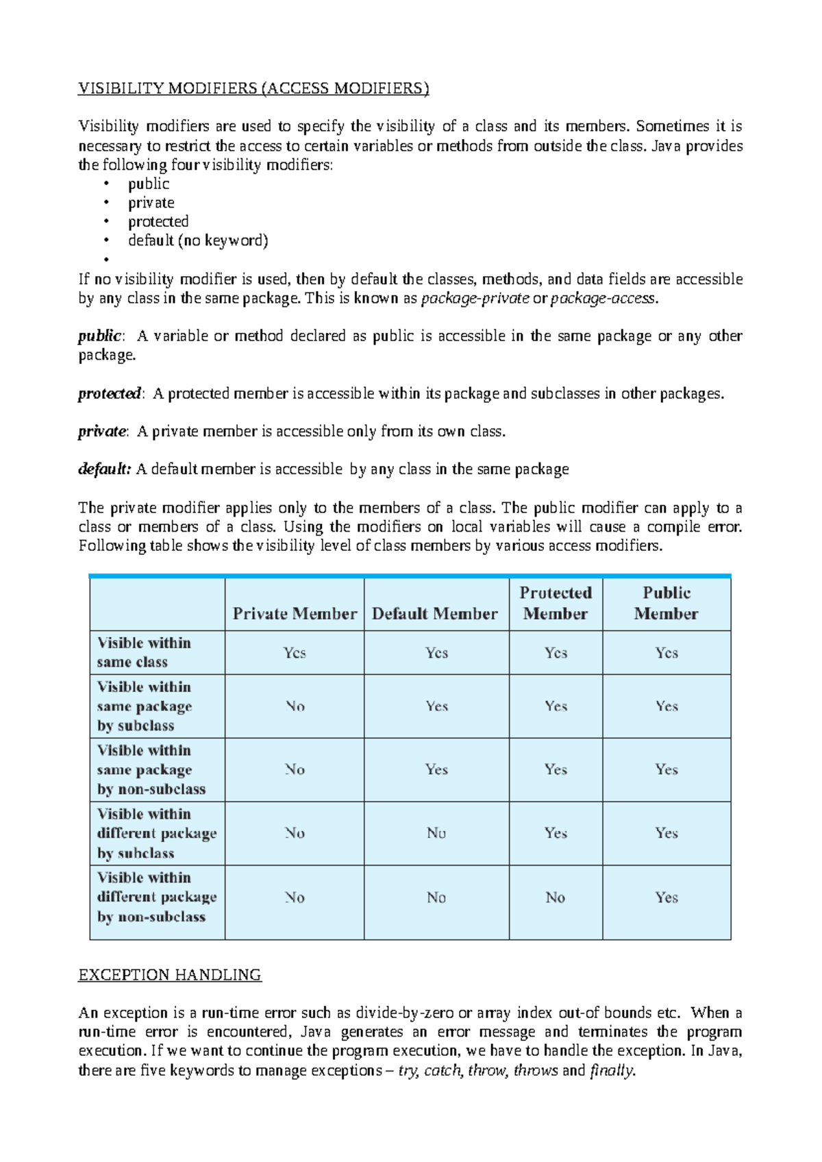 OOP-M1: Visibility Modifiers & Exception Handling Overview - Studocu