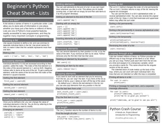 beginners python cheat sheet pcc lists.pdf - Beginner's Python Cheat ...