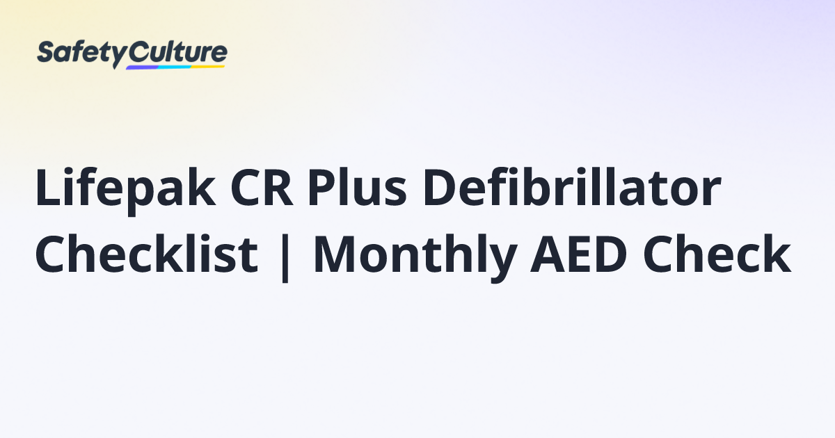 Lifepak CR Plus Defibrillator Checklist | Monthly AED Check | Free Template