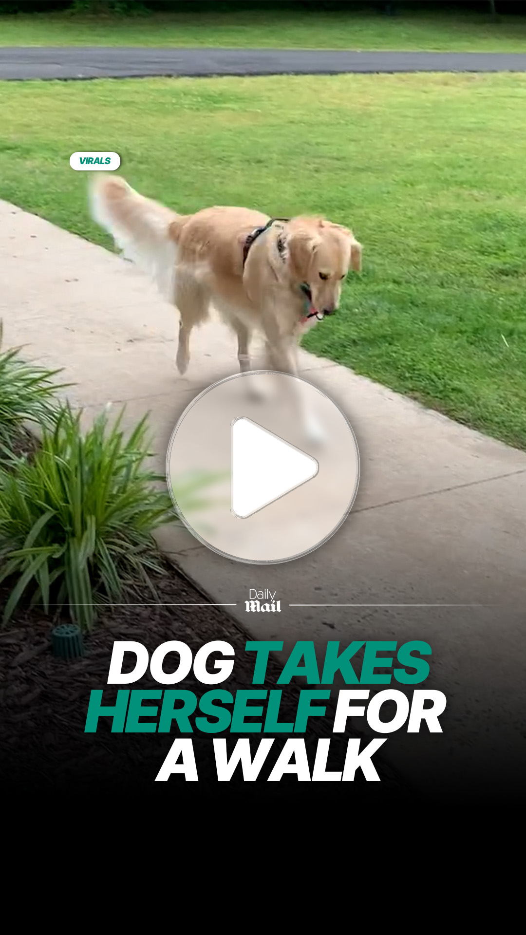 Golden retriever takes herself for a walk