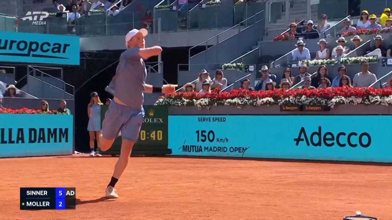 Moment: Hand shot by Moller as he surrenders set to Sinner