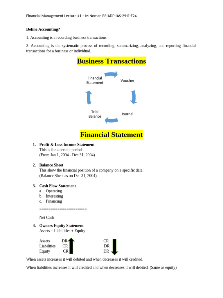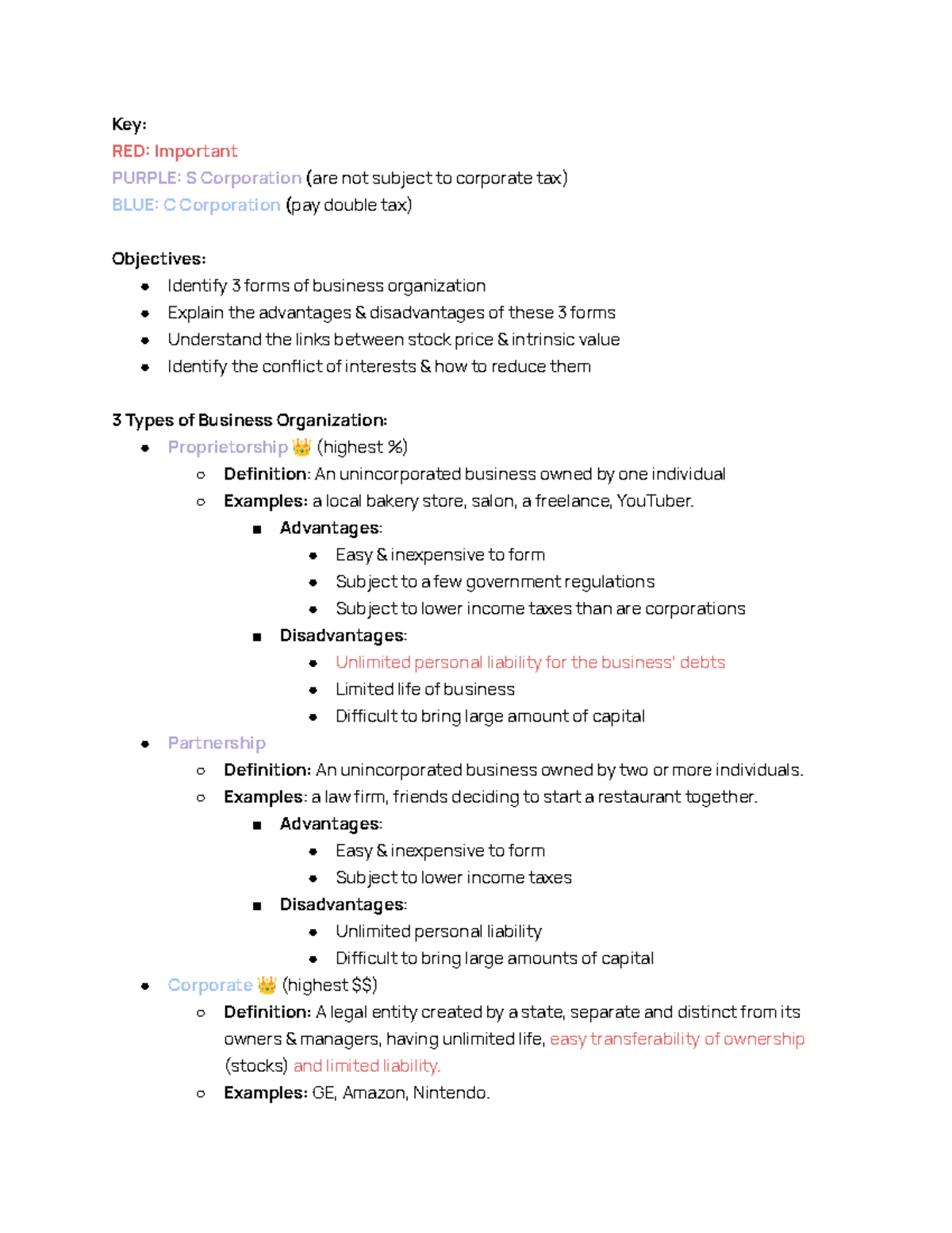 Financial Management Lecture 1 - Key: RED Important PURPLE S ...
