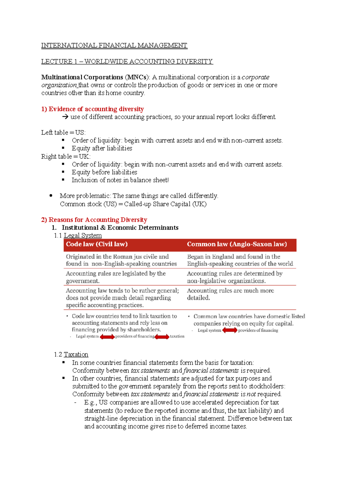 IFM lecture notes - INTERNATIONAL FINANCIAL MANAGEMENT LECTURE 1 ...