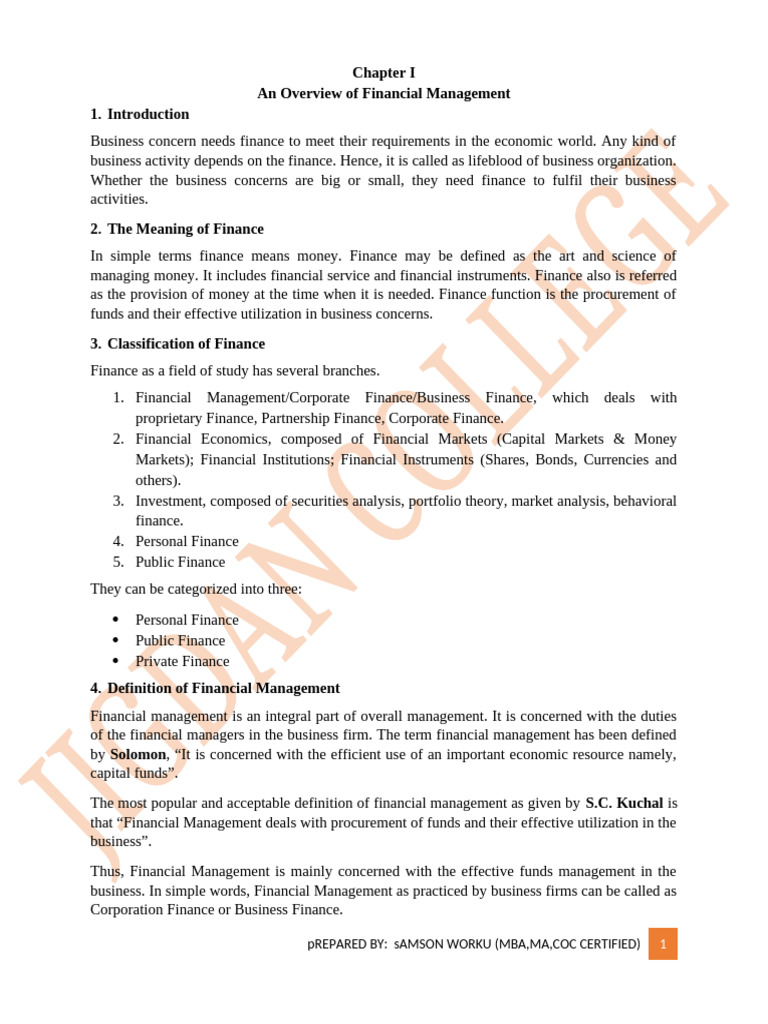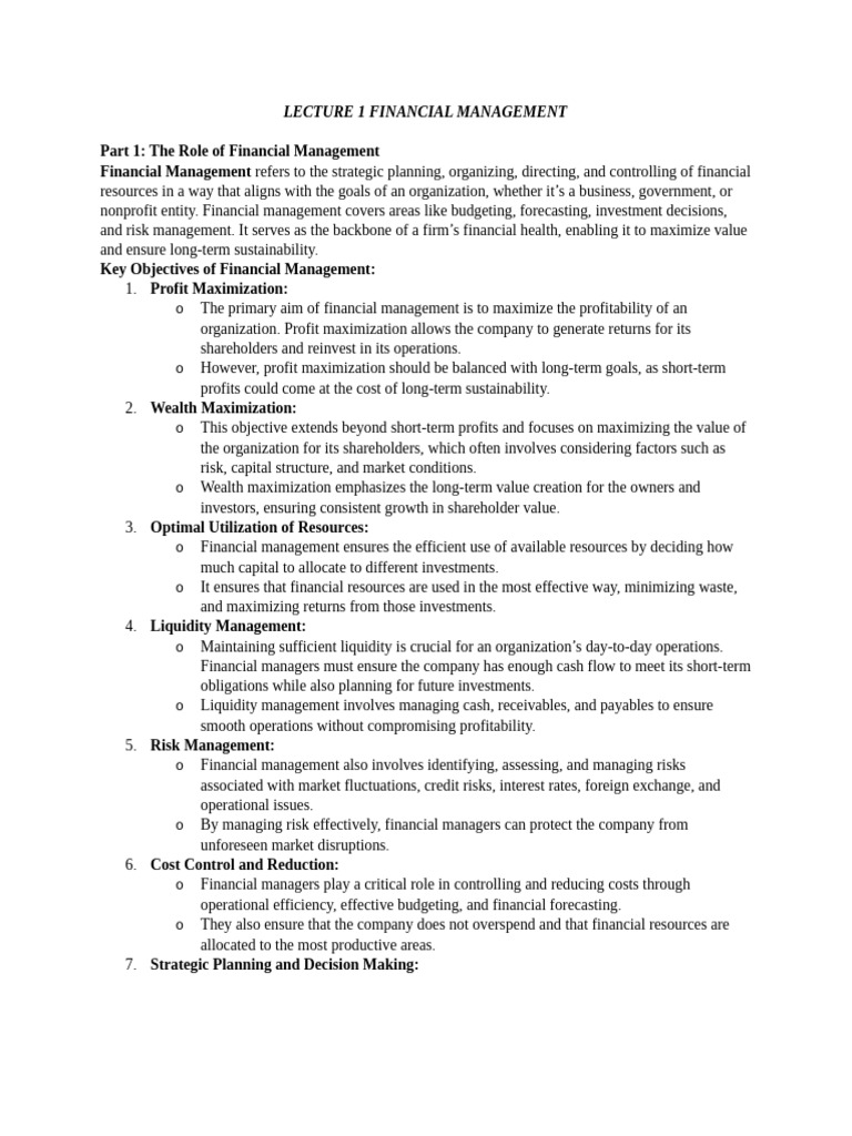 Based on this image's title: “Financial management lecture 1 | PDF”