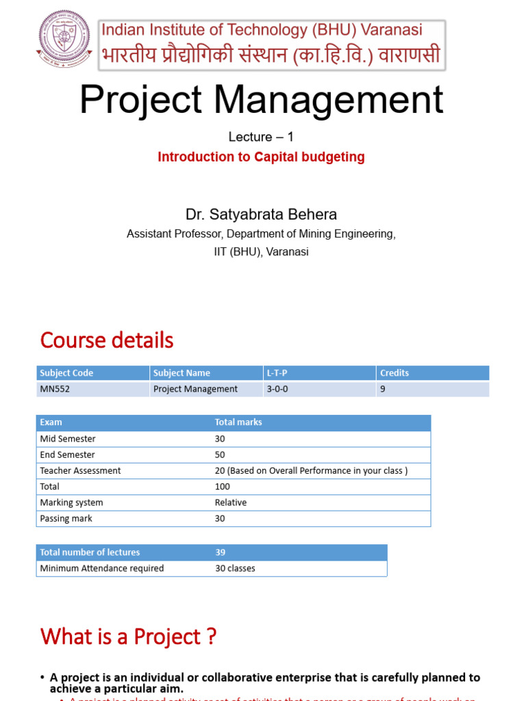 Project Management Lecture - 1 | PDF | Project Management | Investing
