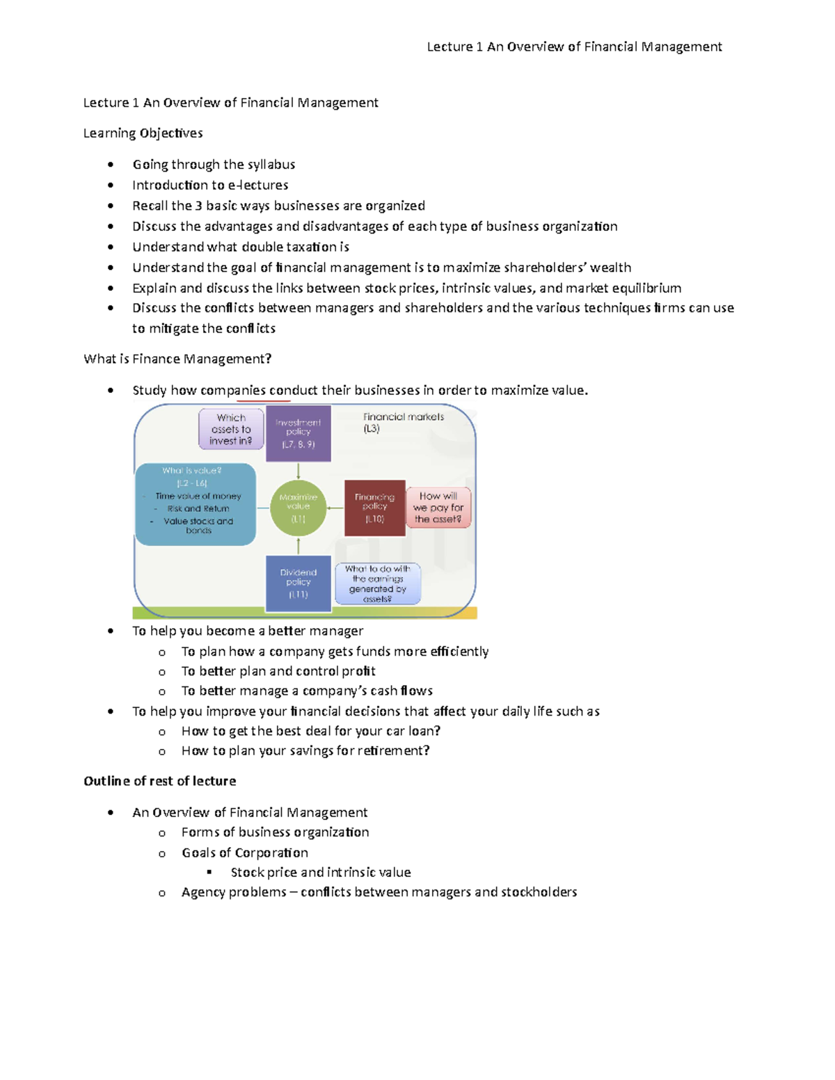 Lecture 1 - An Overview of Financial Management - Lecture 1 - An ...