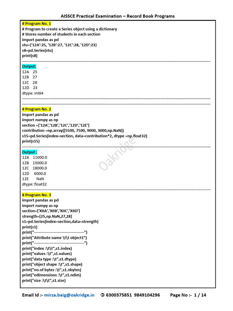 Python Series 1 Answersheet - programming in python - Studocu