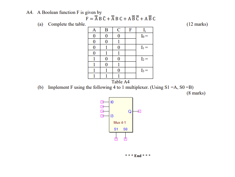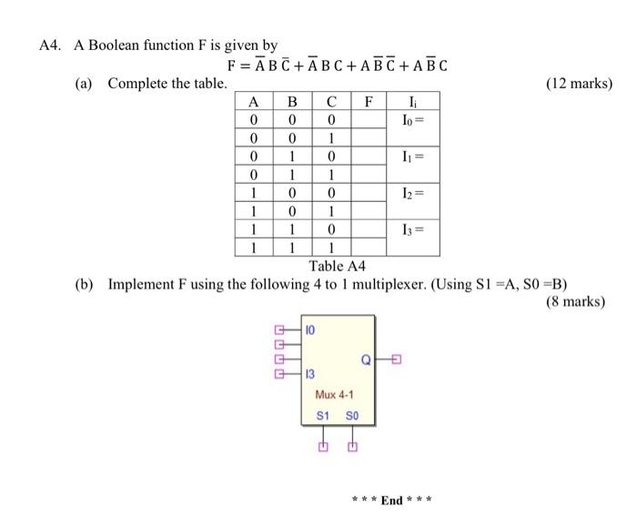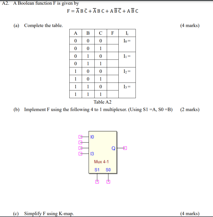 Solved A4. A Boolean function F is given by (a) Complete the | Chegg.com