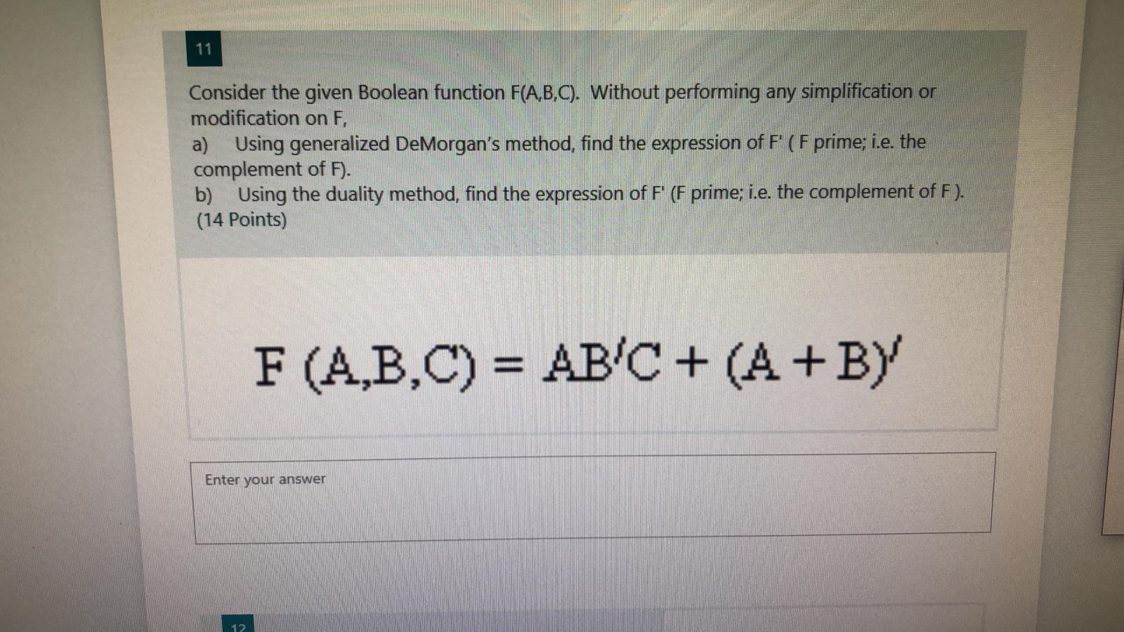Solved 11 Consider the given Boolean function F(A,B,C). | Chegg.com