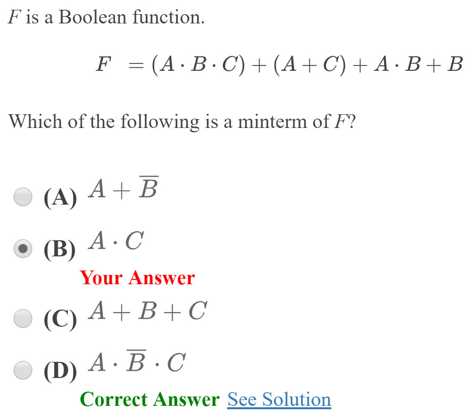 Solved F is a Boolean function. F (A B C)(A+C) +A B+ B Which | Chegg.com