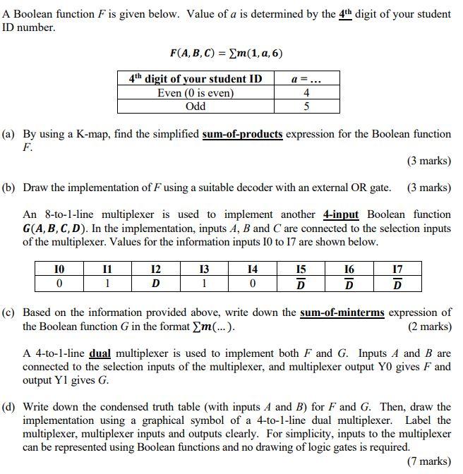 Solved A Boolean function F is given below. Value of a is | Chegg.com