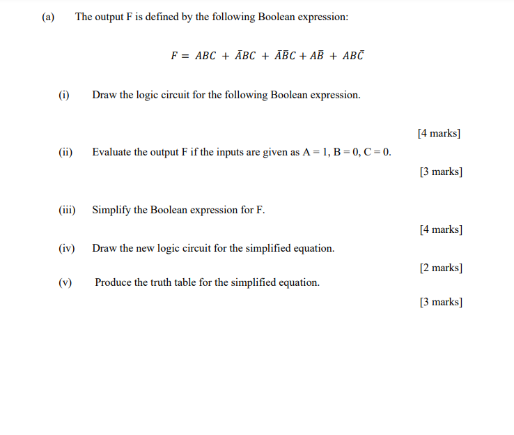 Solved (a) The output F is defined by the following Boolean | Chegg.com