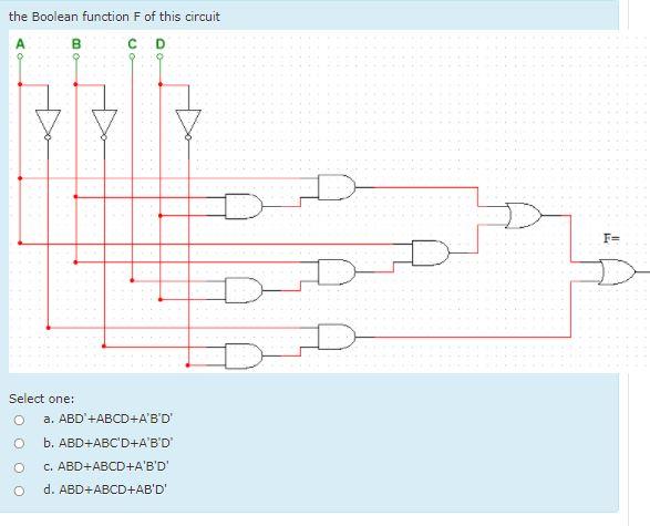 Solved the Boolean function F of this circuit B C D F= | Chegg.com
