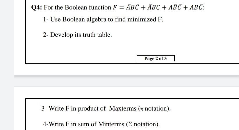 Solved Q4: For the Boolean function F = ABC + ABC + ABC + | Chegg.com