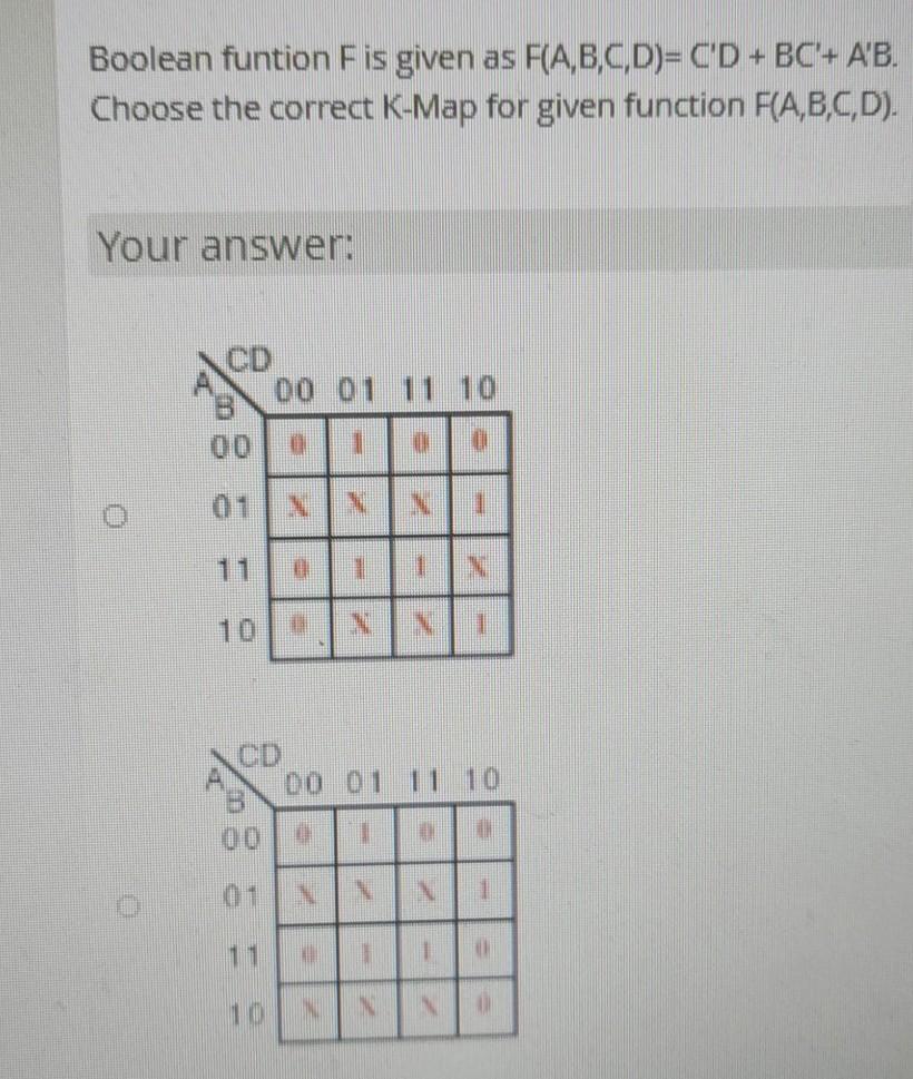 Solved A Boolean function F(A,B,C,D) is given by the K-map: | Chegg.com