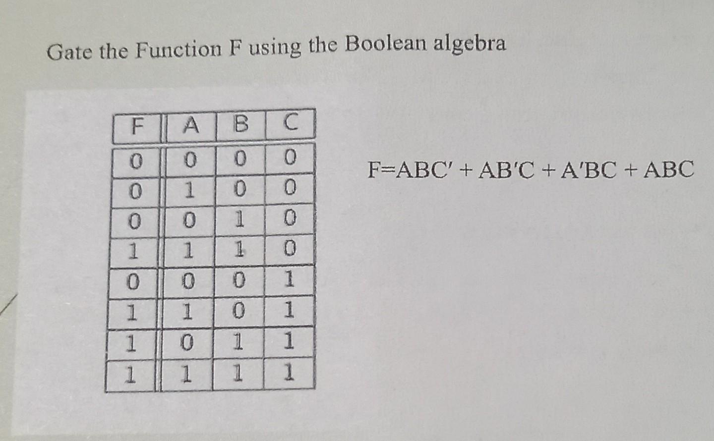 Solved Gate the Function F using the Boolean algebra | Chegg.com