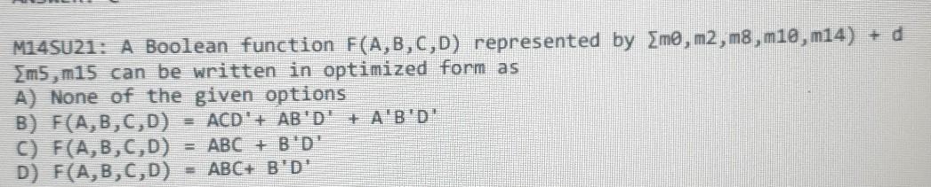 Solved M145021: A Boolean function F(A,B,C,D) represented by | Chegg.com