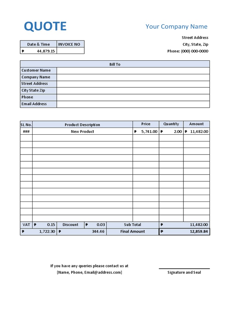 Free Excel Quote Template | docelf.com