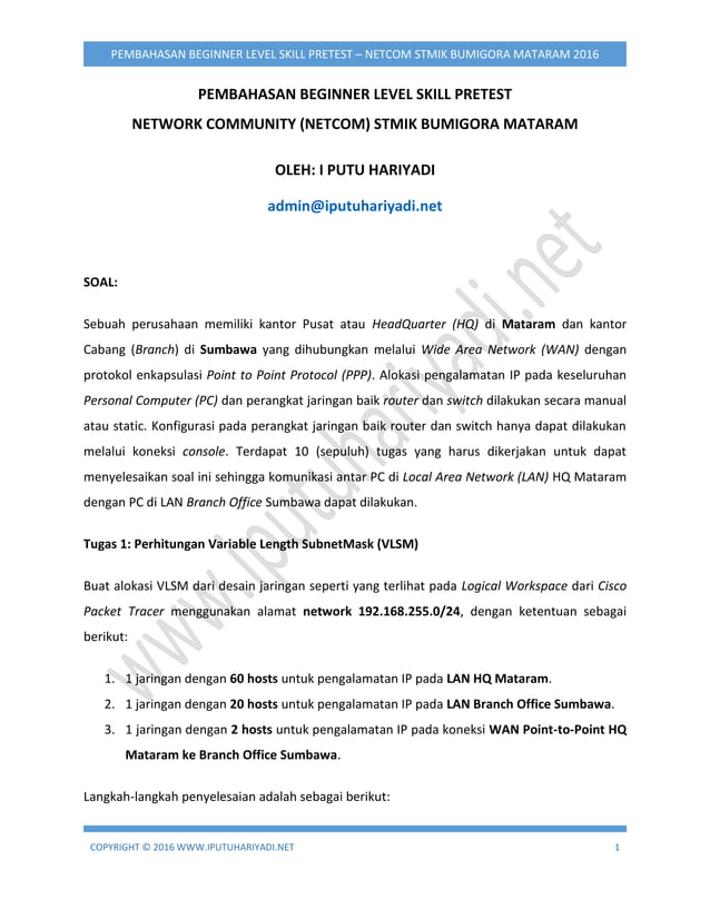Pembahasan NETCOM Beginner Level Skill Pretest | PDF