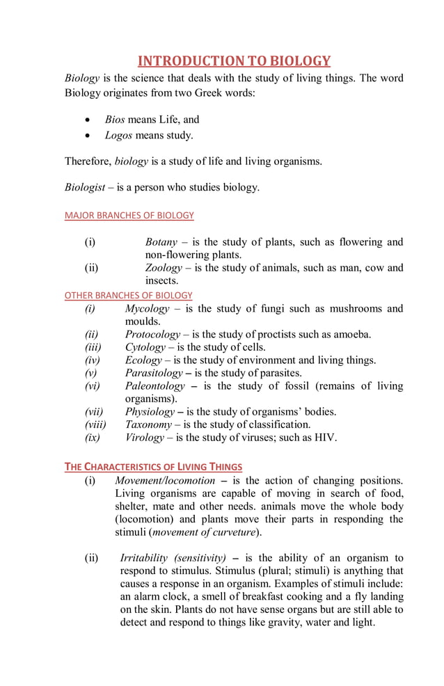 Biology Form 1 Notes - Introduction To Biology - EcoleBooks | PDF