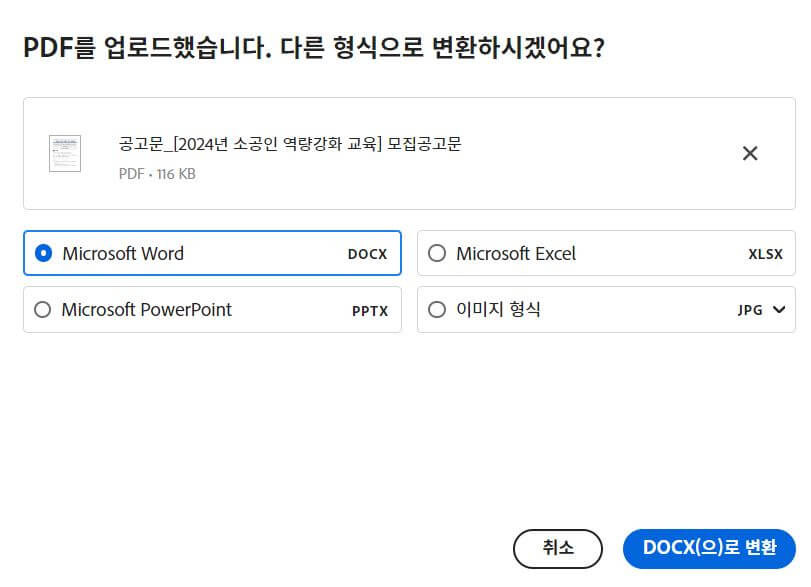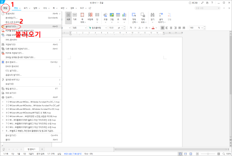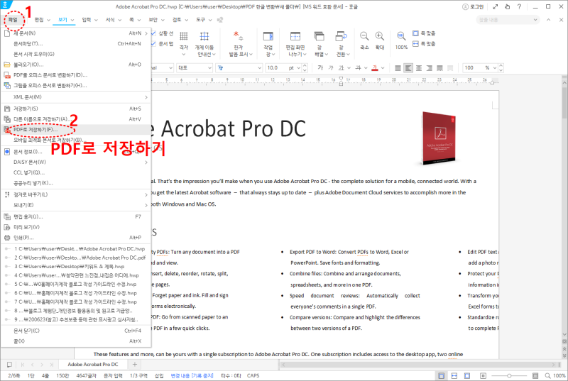 pdf파일을 한글파일로변환 방법 및 진행 과정