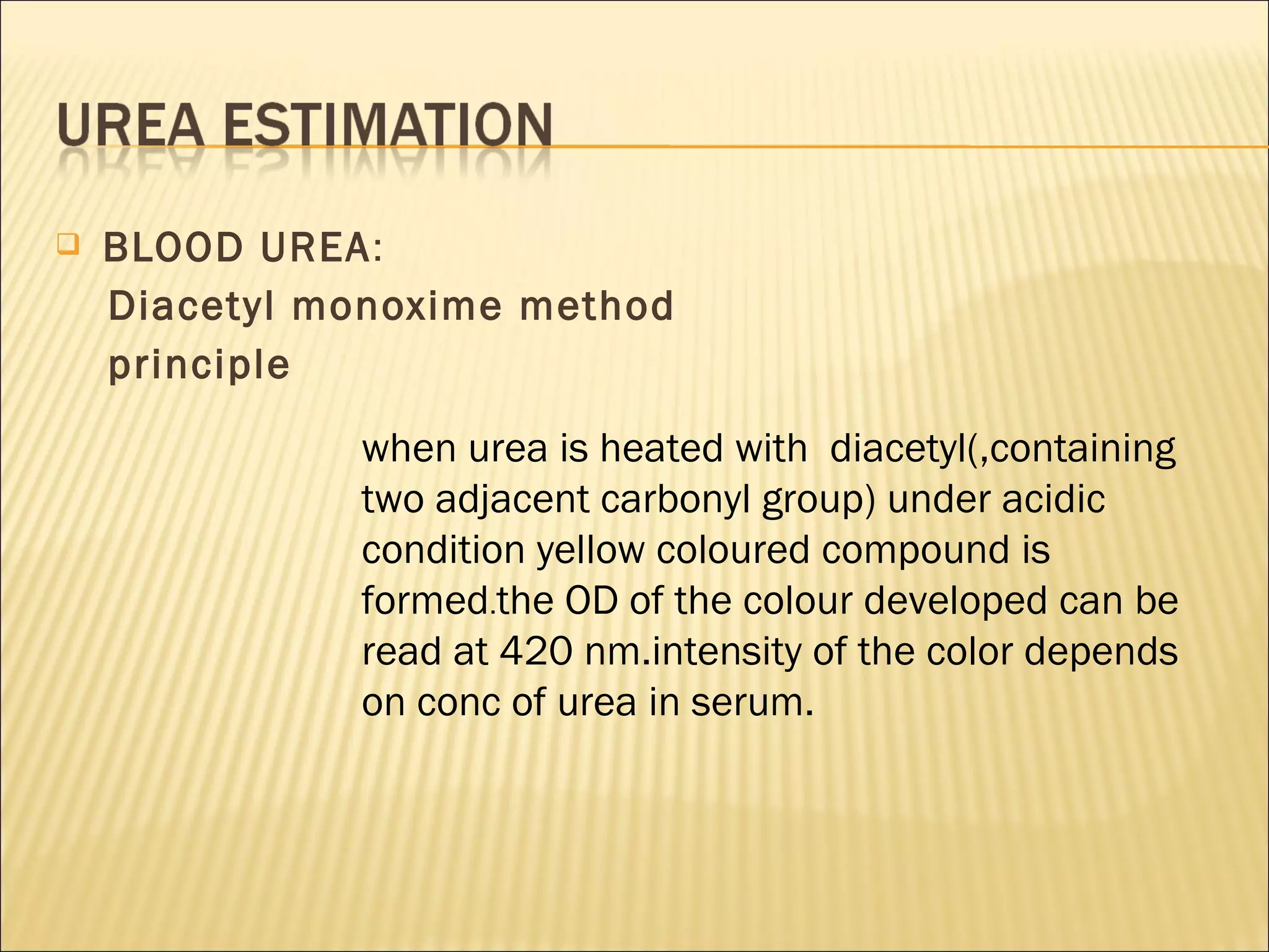 ESTIMATION OF UREA IN BLOOD DIACETYL MONOXIME OR DAM METHOD: