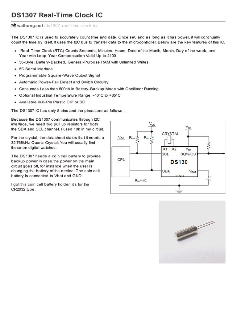 DS1307 RealTime Clock IC | PDF | Computer Science | Electronics