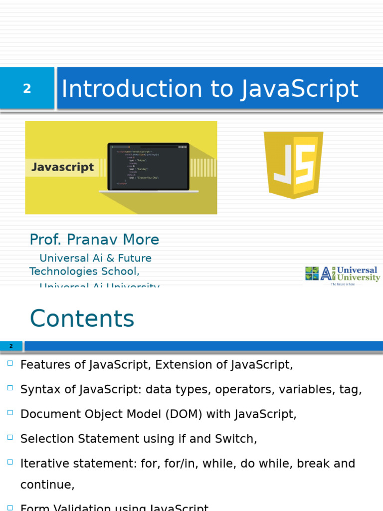 Based on this image's title: “U2. Introduction To Javascript | PDF | Document Object Model | Java Script”