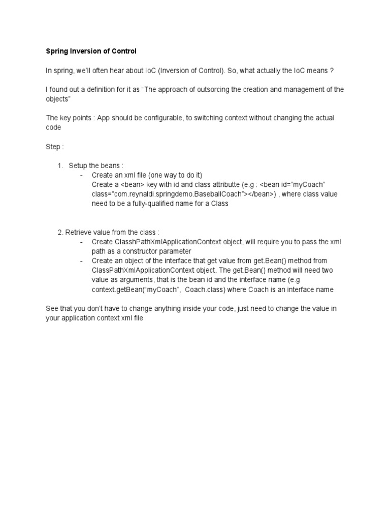 Spring IoC Inversion of Control Explained | PDF
