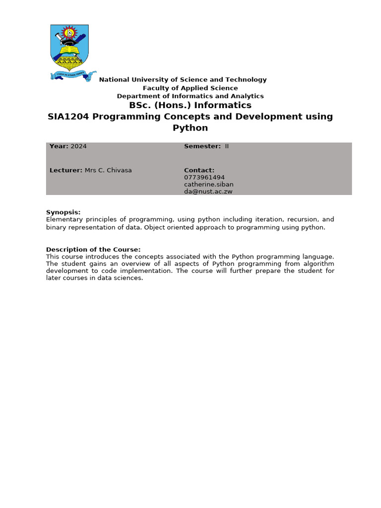 Course Outline 2024 | PDF | Computer Programming | Python (Programming ...