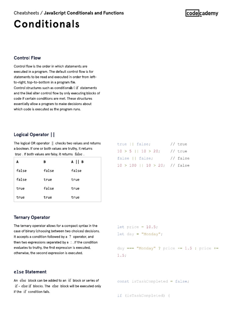 Loops and Conditionals Cheat Sheet | PDF